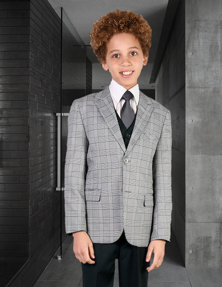 3PC COMPOSE PLAID JACKET WITH SOLID COLOR PANTS AND VEST