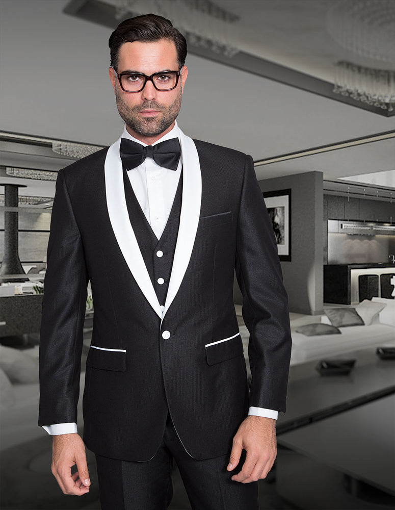 3 PC FLAT FRONT PANTS, SHAWL LAPEL TUXEDO