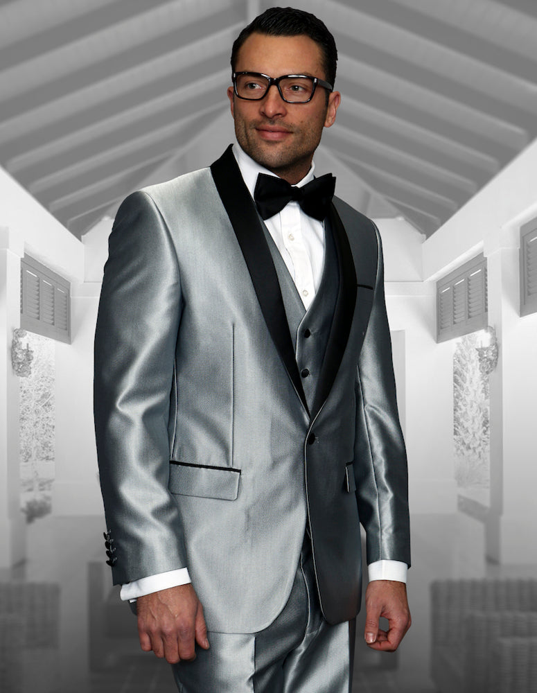 3 PC FLAT FRONT PANTS, SHAWL LAPEL TUXEDO