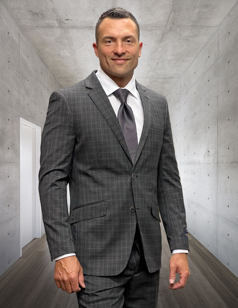 2PC Plaid Italian Wool Suits. Super 200's. Modern Fit Flat Front Pants