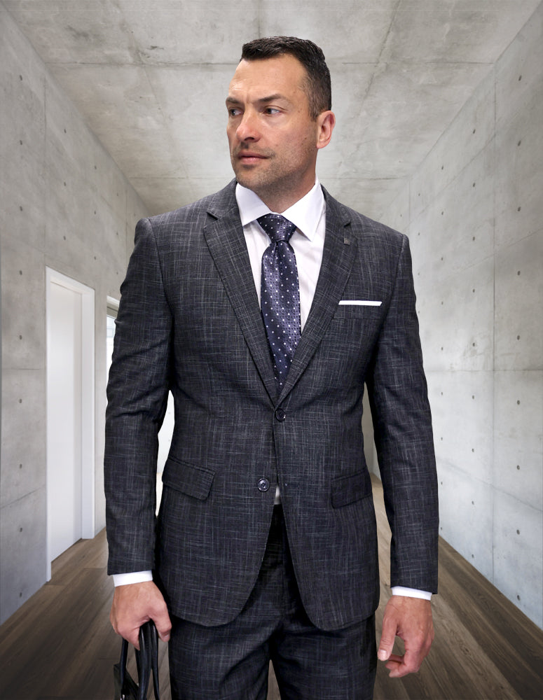 2PC Plaid Italian Wool Suits. Super 200's. Modern Fit Flat Front Pants
