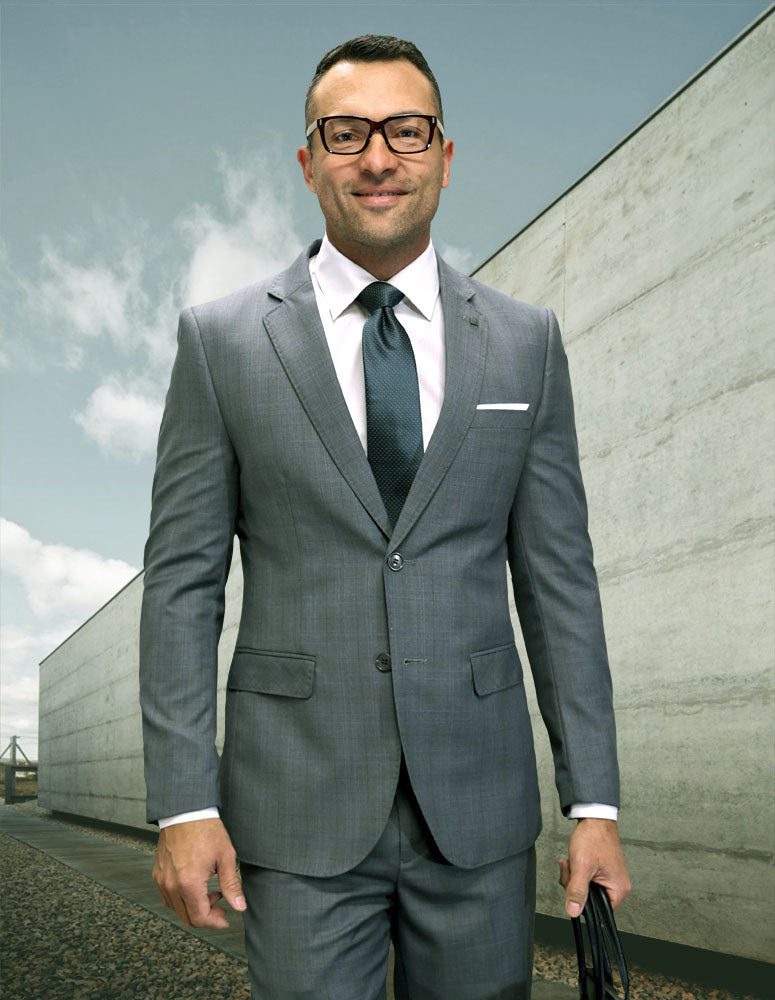 2PC Plaid Italian Wool Suits. Super 200's. Modern Fit Flat Front Pants