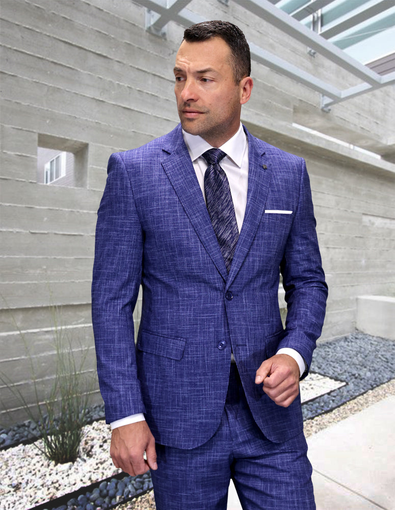 2PC Plaid Italian Wool Suits. Super 200's. Modern Fit Flat Front Pants