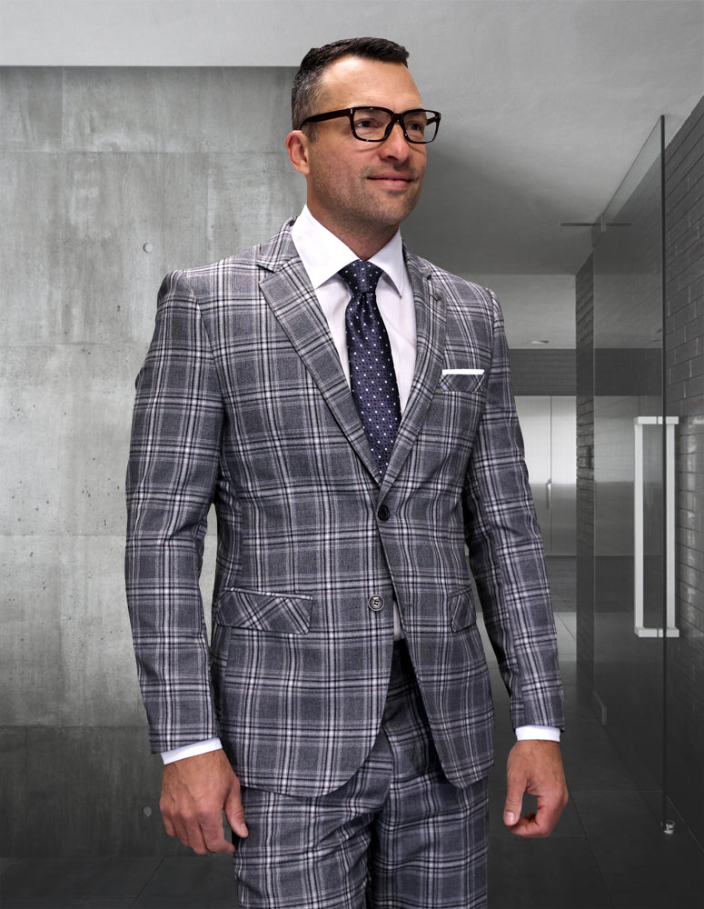 2PC Plaid Italian Wool Suits. Super 200's. Modern Fit Flat Front Pants
