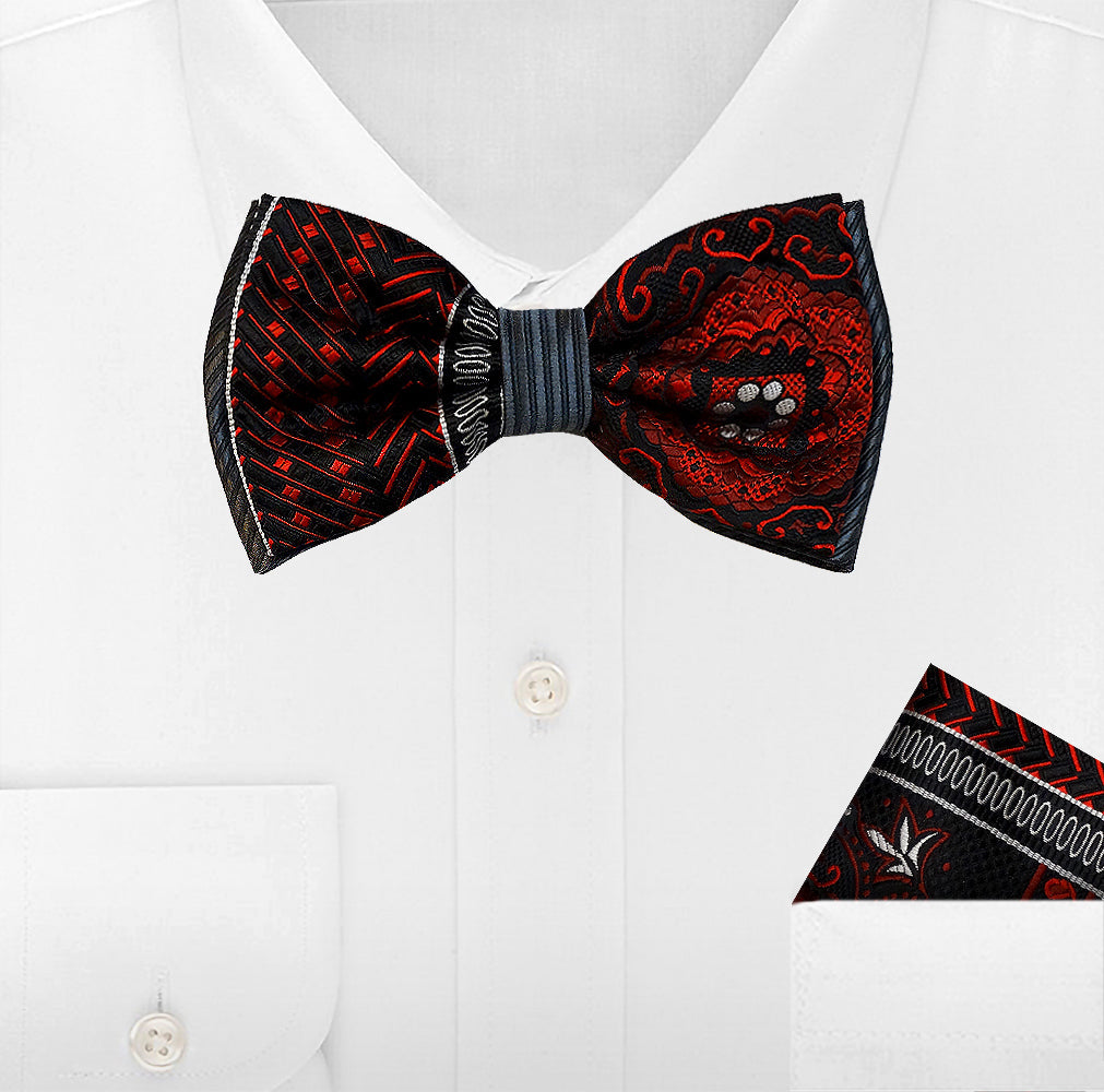 HIGH QUALITY 2PC WOVEN BOW TIE AND HANKIE SET
