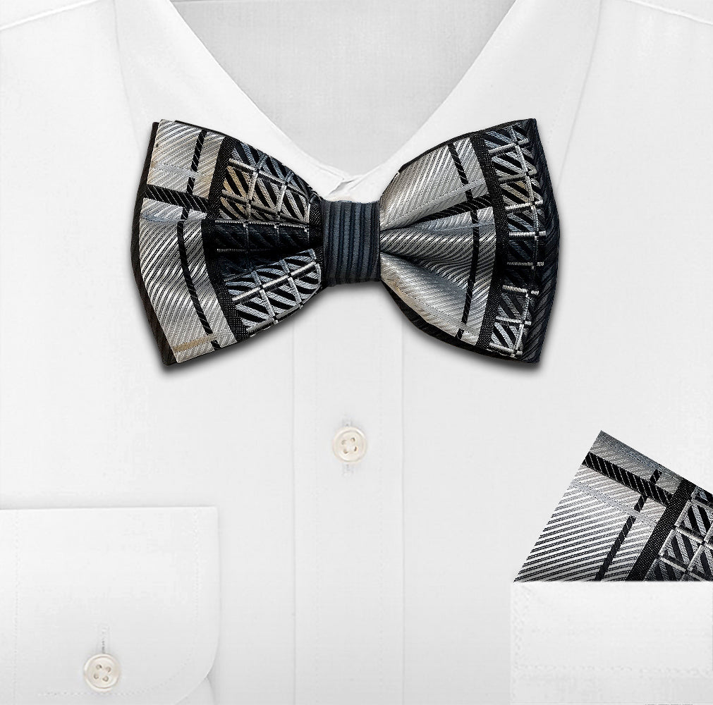HIGH QUALITY 2PC WOVEN BOW TIE AND HANKIE SET